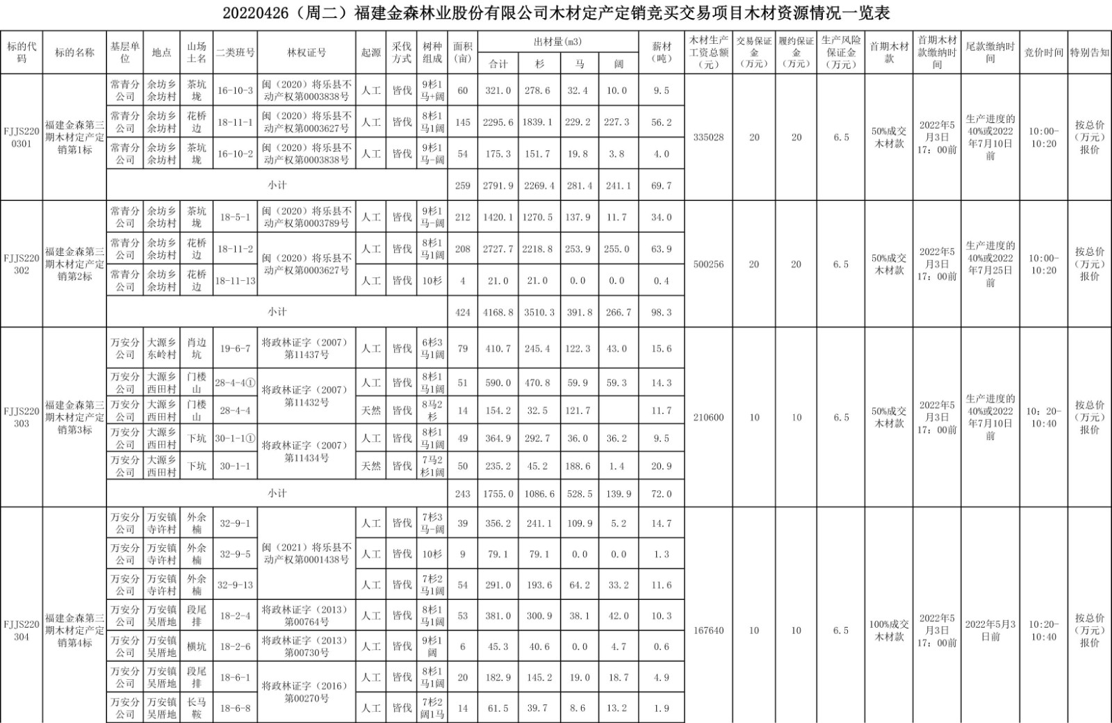 20220426(周二)福建金森林業股份有限公司木材定產定銷競買交易項目